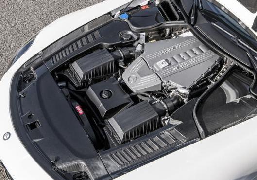 Il propulsore utilizzato dalla "AMG" per la SLS è il motore M159 un'evoluzione del v8 M156. Tale propulsore, al momento del suo debutto, era il motore v8 a "ciclo otto" aspirato più potente al mondo per un autovettura di serie omologata per uso stradale, già in uso su altri modelli ad alte prestazioni della Casa . Trattasi di un 6.2 litri di cilindrata (anche se la casa continua a sostenere che si tratti di un 6.3 litri), e più precisamente di 6208 di cilindrata, in grado di sviluppare la sbalorditiva potenza di 571 cv a 6800 giri/min, ed una coppia massima di 650 Nm a 4750 giri/min. Il cambio invece è di tipo sequenziale robotizzato a doppia frizione, con 7 rapporti, dagli innesti assai veloci che vengono eseguiti quasi senza interruzione di coppia.